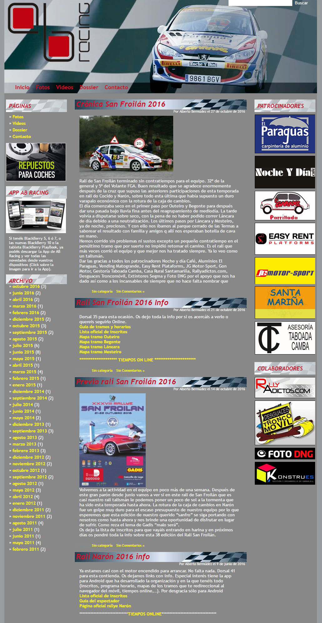 es la web del piloto de rallies Alberto Bermúdez. Se ha realizado una sencilla web en WordPress para informar sobre las competiciones, resultados y demás noticias relacionadas con el equipo AB Racing.