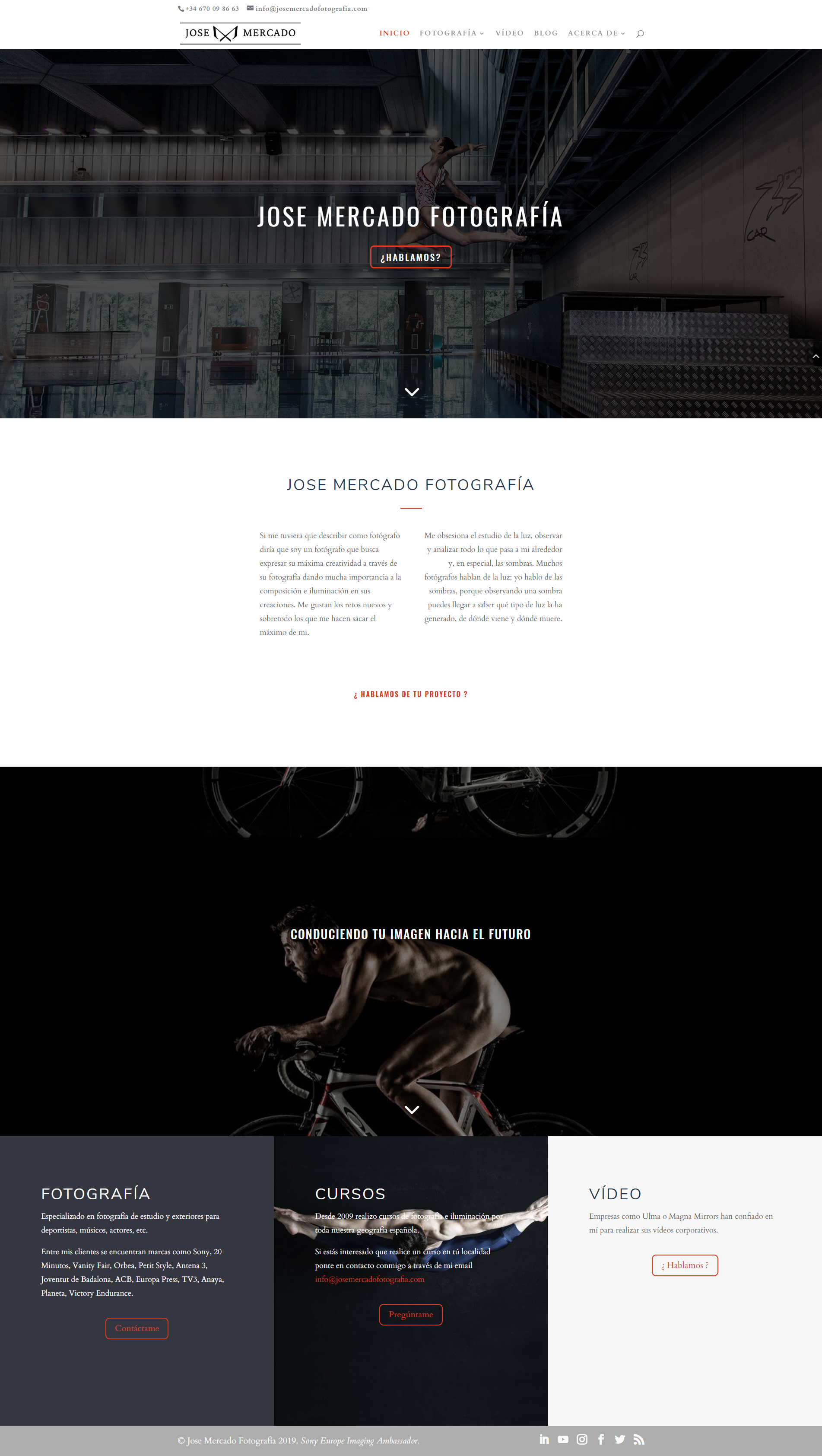 Paso del sitio web de Jose Mercado Fotografía a WordPress, con importación de posts de Bloggers y paso de las galerías anteriores a la nueva web. Remodelación total de imagen del website